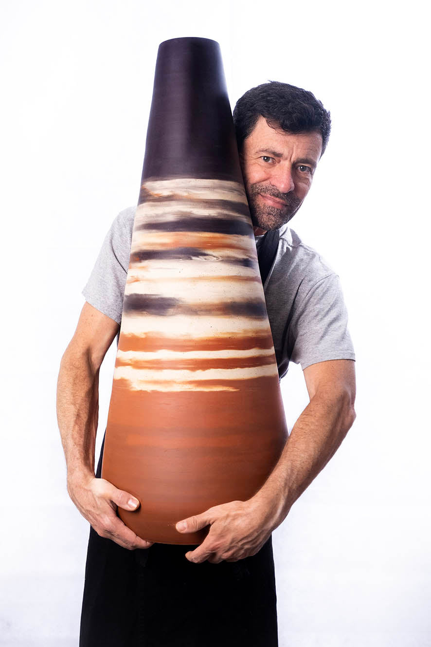 Dieter Telemans is opgegroeid in Afrika, zijn fascinatie voor Afrikaanse keramiek is terug te zien in zijn werken. Zowel de decoratietechnieken als het assembleren en draaien van grotere stukken met een speciale techniek van opbouwen op de draaischijf zijn magnifiek.