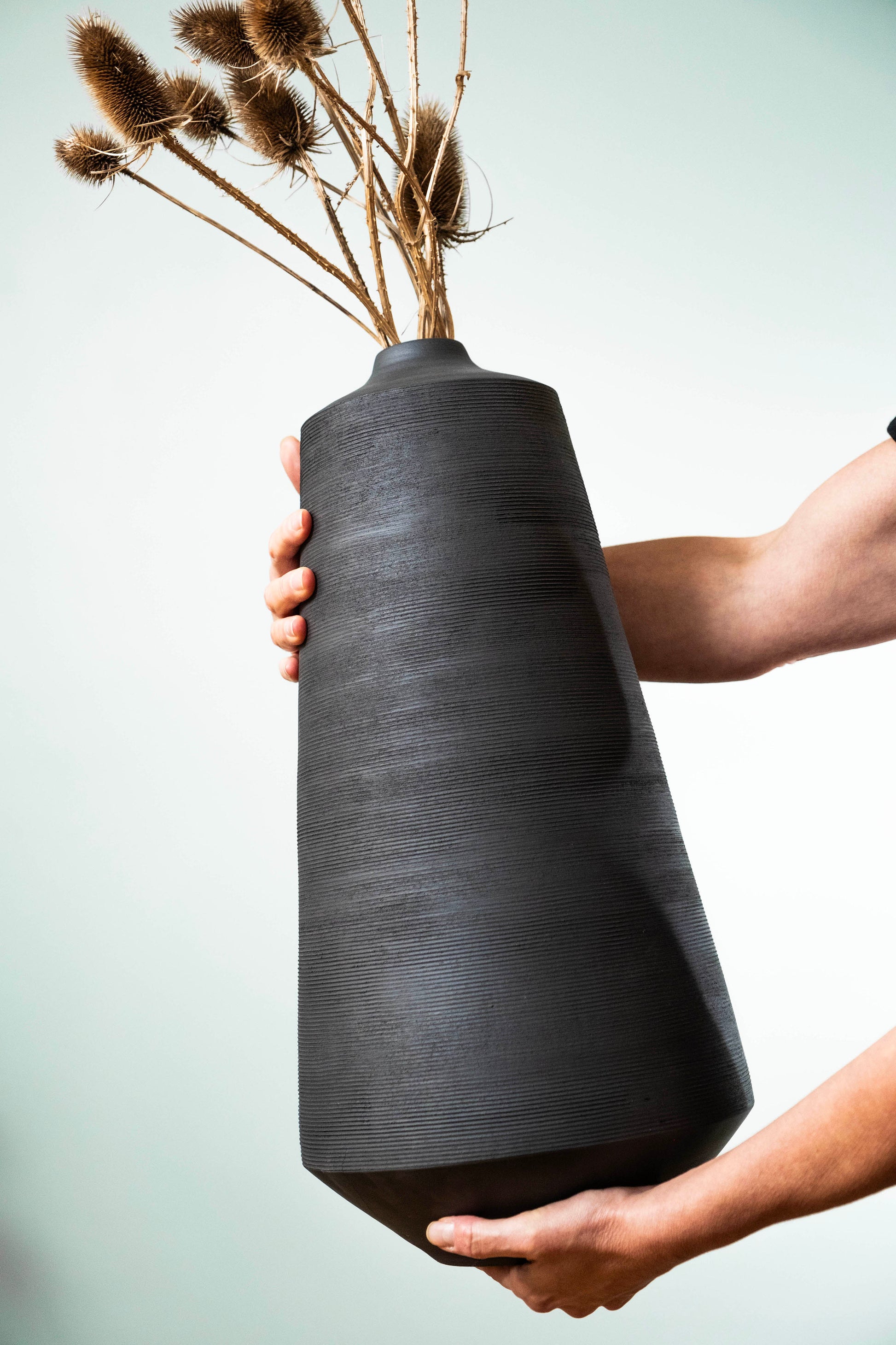 Tijdens deze masterclass werken we met kleirollen of 'colombins' op de draaischijf. Je centreert eerst de hoeveelheid klei die je zelf beheerst en maakt de bodem en het eerste deel van je vaas. Daarna gaan we aan de slag met de rollen klei. Om snel rollen te maken, zullen meerdere extruders klaar liggen. We leren hoe de rollen te plaatsen met amper gebruik van water en op de trekken door gebruik te maken van een stabiele houding en de kracht van de draaischijf. Regelmatig drogen we de klei onderaan zodat de vaas de gewenste vorm behoudt. Op deze manier kan je een grote vaas maken zonder al te veel spierkracht en kan je de vorm van je vaas aanpassen aan je creatieve verlangens.